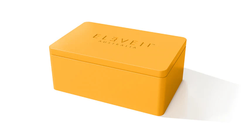 ELEVEN Blonde Holiday Trio fjólublátt sjampó og næring sem nærir, dregur úr gulum tónum og gefur hári góðan raka og ljóma. Í viðbót fylgir í kaupbæti Miracle Hair Treatment, sem veitir djúpa næringu og vernd – allt saman í fallegum, endurvinnanlegum gulum hátíðarkassa sem hentar fullkomlega sem gjöf.