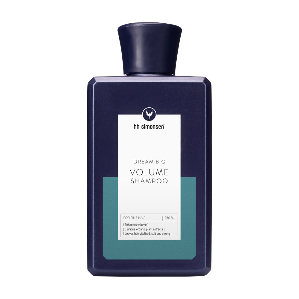 Volume Shampoo frá HH Simonsen gefur þunnu og fíngerðu hári lyftingu og fyllingu og styrkir það þökk sé einstakri samsetningu af náttúrulegu plöntuextrakti. Ginsengrót, syllium og hvítt dauð netlu blóm hafa samverkandi áhrif á kraft og lyftingu hársins á meðan ferskt og kælandi mentól örvar hársekkina.