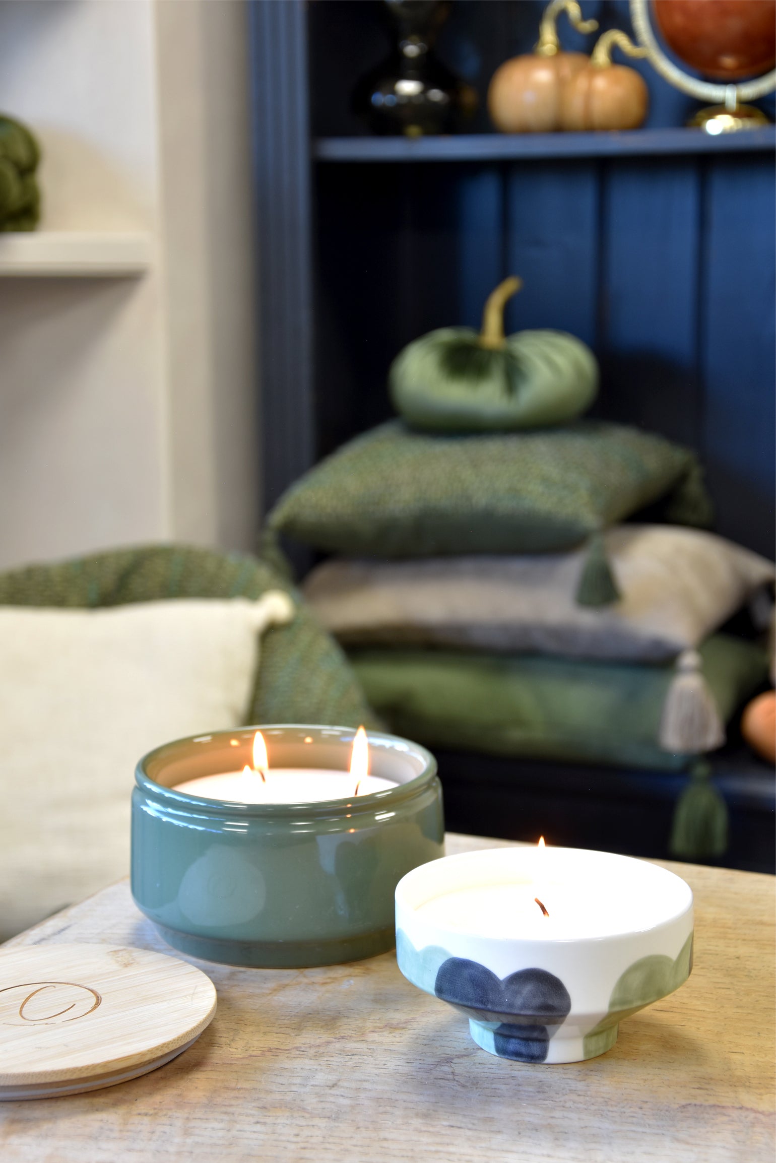 Handmálað keramik kerti á fæti