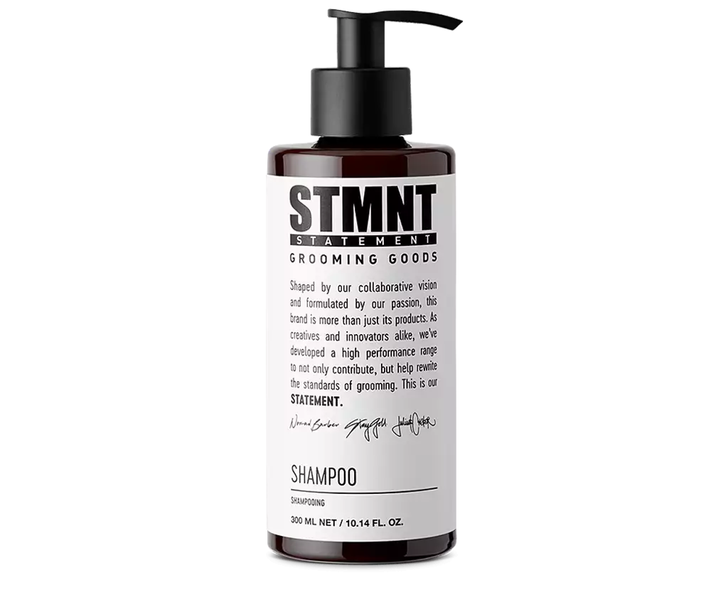 STMNT Shampoo er þróað til að hreinsa hárið djúpt og fjarlægja allar leifar af hárvörum og óhreinindum, án þess að þurrka eða erta hársverð.